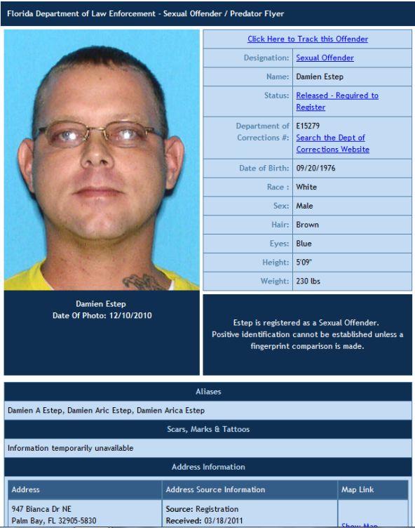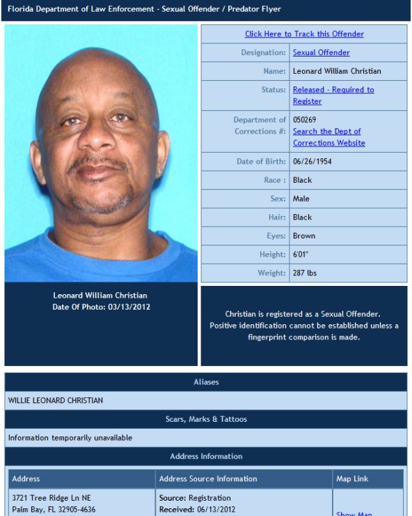 These predators and offenders are registered as residing in ZIPCODEs 32905 and 32907 in the Northeast area of Palm Bay:
