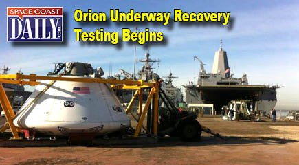 NASA.gov — About a hundred miles off the coast of San Diego, in the Pacific Ocean, a U.S. Navy ship’s well deck filled with water as underway recovery operations began Feb. 18 on a test version of NASA’s Orion crew module to prepare for its first mission, Exploration Flight Test-1, in September.