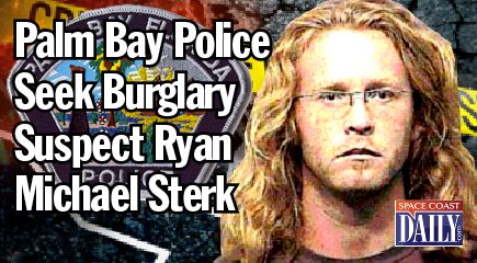 According to the Palm Bay Police Department, the suspect is identified as Ryan Michael Sterk, 30, and is currently being sought for charges involving burglary, credit card theft and petit theft.