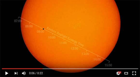 ABOVE VIDEO: The planet Mercury is seen in silhouette, lower third of image, as it transits across the face of the sun Monday, May 9, 2016, as viewed from Boyertown, Pennsylvania.