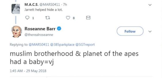 — Roseanne Barr (@therealroseanne) May 29, 2018