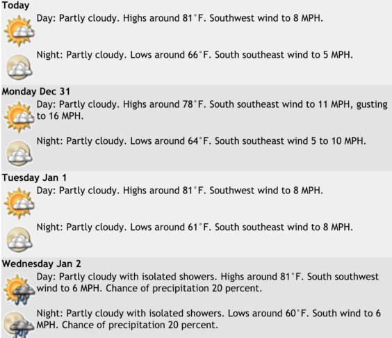 Home » Home » TODAY’S WEATHER: Partly Cloudy, High 81, Low 66, Southwest Wind 8 MPH