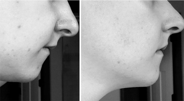 The following pictures show red light therapy for acne before and after, and the difference was obvious just after three sessions of consistent treatment every other day, each lasting 15 minutes.