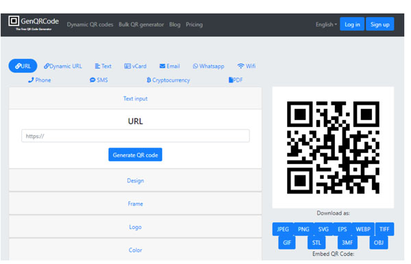 It’s a simple website to create custom QR codes, too. Once you open it, you’ll see several types of symbol frames to choose from. You can then fill out some details, which are based on whichever type you choose. Moreover, customization options are user-friendly and don’t require additional knowledge.