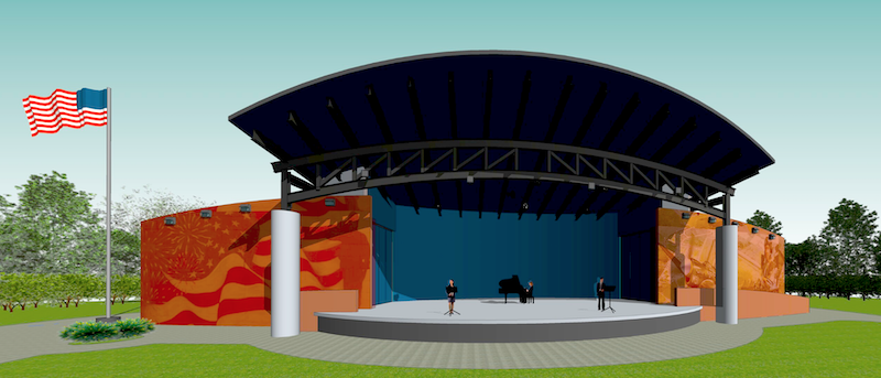 The amphitheatre will be built on the grounds of, and adjacent to the Veterans Memorial Park, and will include 1,700-square-feet of concession and restroom facilities.
