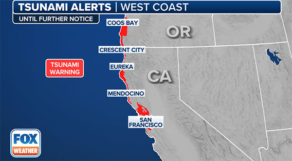 (FOX NEWS) – A magnitude 7.0 earthquake off the coast of Northern California has prompted a rare tsunami warning for coastal areas near the California-Oregon state line, including San Francisco Bay.