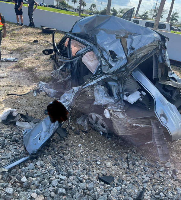 The impact left the vehicle severely damaged, requiring emergency responders from the Malabar Fire Department to extricate the driver from the wreckage.