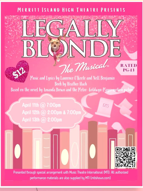 BREVARD COUNTY, FLORIDA—Legally Blonde, The Musical, will be presented by Merritt Island Theatre and will run from April 11 through April 13 at Merritt Island High School.