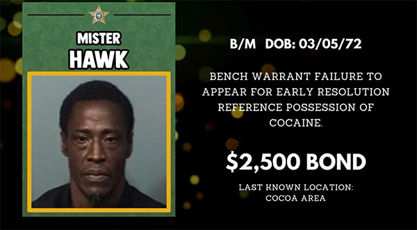 BREVARD COUNTY, FLORIDA – The Brevard County Sheriff’s Office has named 53-year-old Mister Hawk BCSO’s Fugitive of the Week in this week’s edition of “Wheel of Fugitive.”