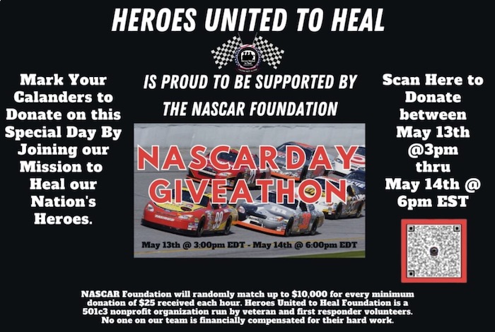 The NASCAR Foundation selected Brevard County charity Heroes United to Heal to participate in its NASCAR Day Giveathon, a 27-hour period during which the racing community supports charities.