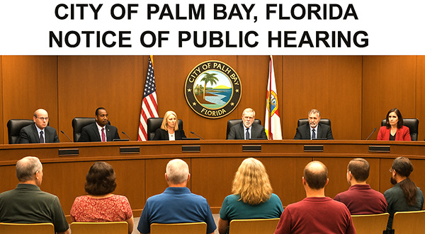 BREVARD COUNTY • PALM BAY, FLORIDA — The City Council of Palm Bay will hold a public hearing on Thursday, August 7, at 6 p.m. at City Hall, located at 120 Malabar Road SE, to consider the adoption of Ordinance 2025-27.