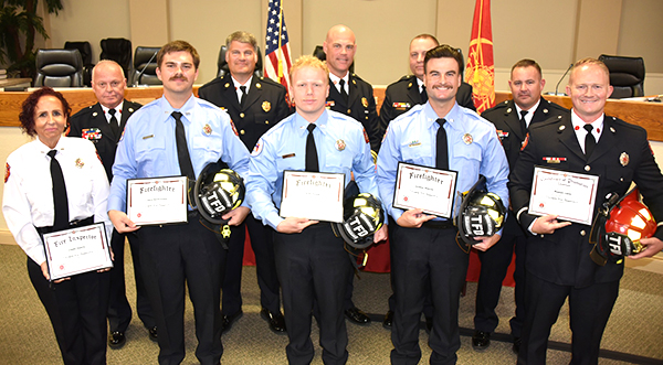 Roman Lane was promoted to Lieutenant, and the newly promoted firefighters are Logan Smith-Catlett, Joshua Wayner, and Kyle Young. Linda Osorio was hired as the new Fire Inspector.