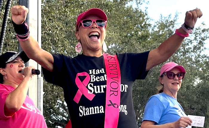 Decked out in plenty of pink accoutrements, Bobbitt, affectionately known as “Stanna,” eagerly stood at the east end of the stage at the Making Strides Against Breast Cancer walk, waiting for her moment Saturday at The Avenue Viera.