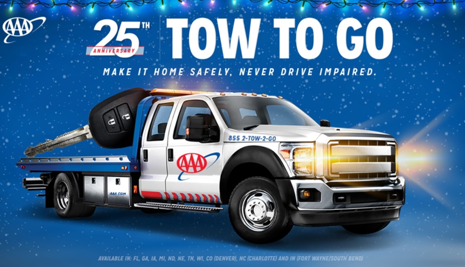 “If you’re faced with the decision of driving impaired, put down those keys and pick up the phone to call Tow to Go,” said Mark Jenkins, spokesperson for AAA – The Auto Club Group.