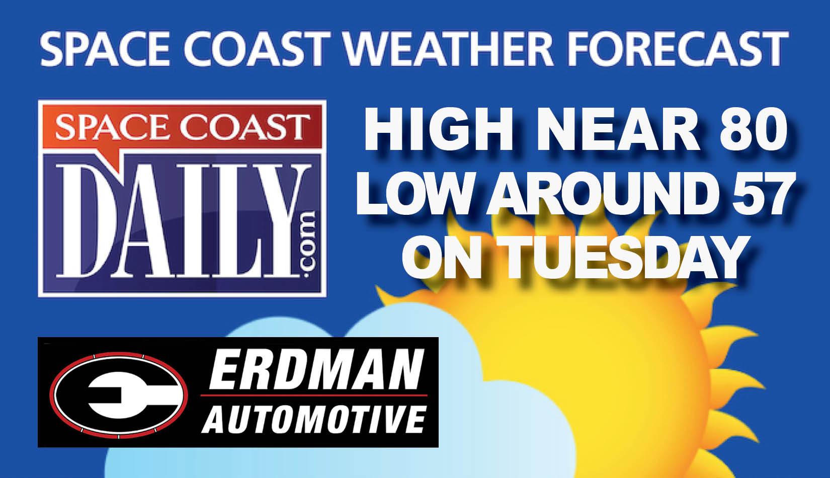BREVARD WEATHER: Mostly Sunny, With a High Around 80 Tuesday on the Space Coast
