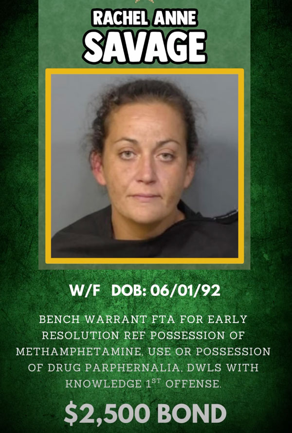 Savage is wanted for Bench Warrant FTA for Early Resolution reference Possession of Meth.