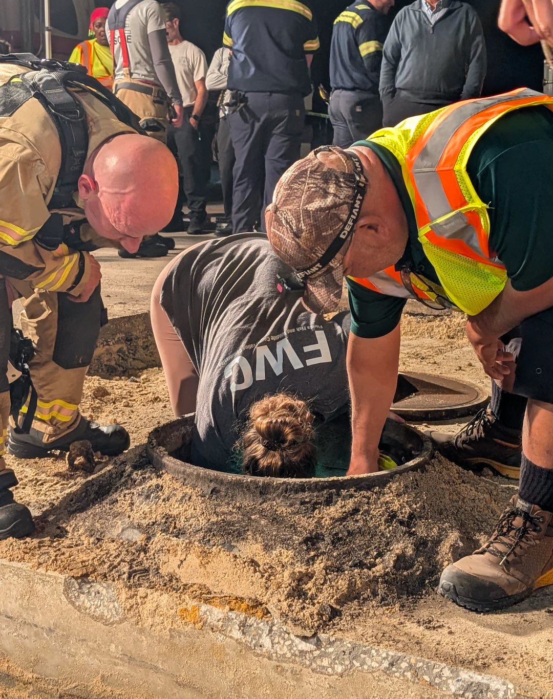 Onlookers and residents gathered as crews labored late into the evening, cheering when the massive sea cow was finally extracted from its confined space. Local officials and volunteers alike praised the collaboration among fire rescue, wildlife experts, and public works crews.