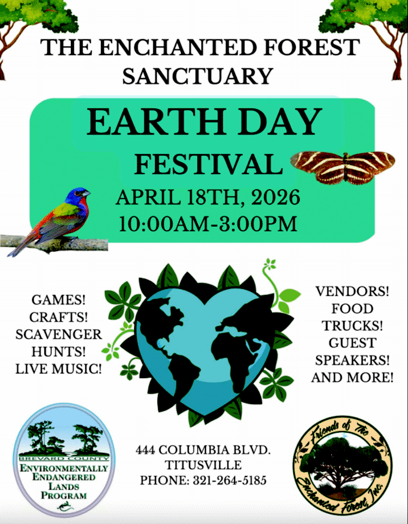 On Saturday, April 18, from 10 a.m. to 3 p.m., the Enchanted Forest is hosting their annual Earth Day Festival, featuring crafts, vendors, food trucks, guest speakers, and local exhibitors who will share information on ways Brevard County residents can be more environmentally focused.
