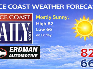 Friday’s forecast calls for mostly sunny skies, high around 82, low near 66. […]