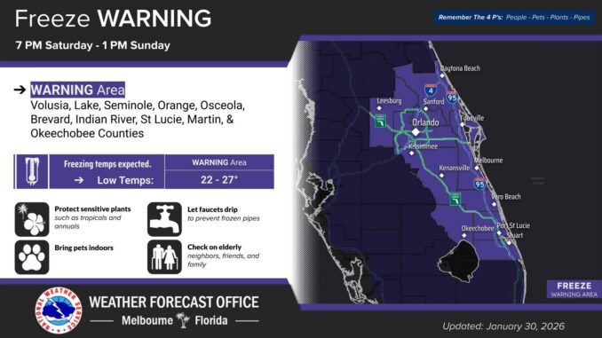 Brevard Under Freeze Warning: 50 MPH Wind Gusts, Temperatures in 20s Forecast Tonight into Sunday Morning