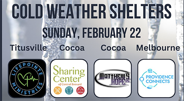 Cold weather shelters open across Brevard on Sunday, February 22, as agencies responded to forecasts calling for low overnight temperatures. […]