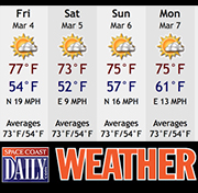 Considerable cloudiness early in the morning then becoming mostly sunny. Breezy. Highs in the upper 70s. West winds 10 to 15 mph becoming north 15 to 20 mph in the afternoon. […]